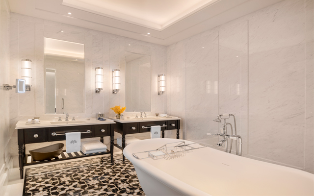 There are 115 keys across nine suite categories, from the lead-in State Room Suites to the Presidential Suites. Recreational facilities on-site include the Raffles Spa, 24-hour gym and a rooftop swimming pool. Hotel guests may also avail the service of Raffles Butlers.