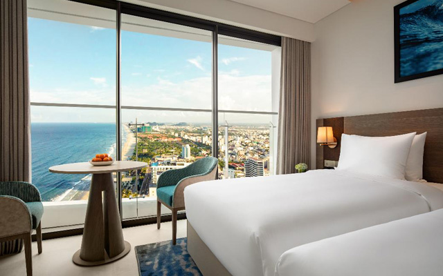 Radisson Hotel Danang features 182 rooms and suites with views of the city, ocean or peninsula. The seven-room categories range from 28m² Deluxe Rooms to 70m² Family Room Ocean View, and the Executive Lounge is an exclusive 20th-floor space that offers extra services and all-day refreshments.